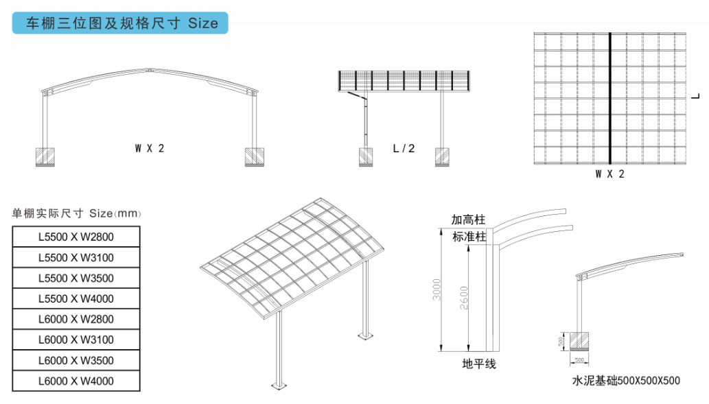 用途:室外遮陽(yáng)擋雨,停車(chē)專(zhuān)用